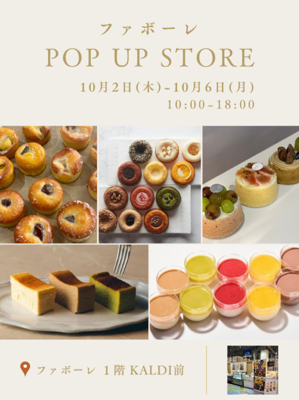 10月2日(木)から6日(月)までの5日間、ファボーレ KALDI前にて期間限定POP UPを開催いたします。