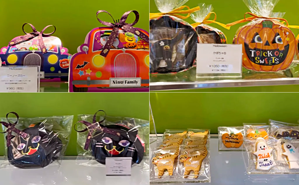 かぼちゃや黒猫、きのこモチーフの限定ギフトも登場し、ショーケースの中もにぎやかに。