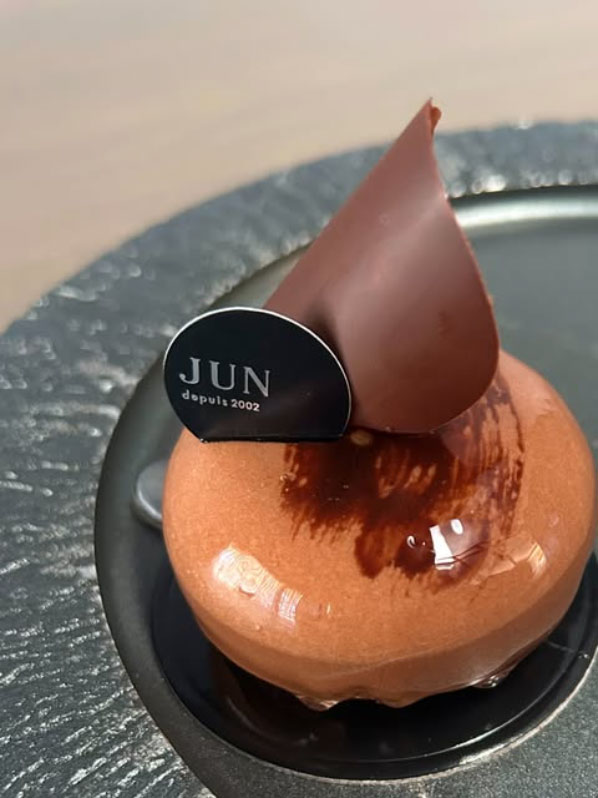 ヴァローナ社のカカオ70%「グアナラ」を贅沢に使用した、 3層仕立てのチョコレートムース。
