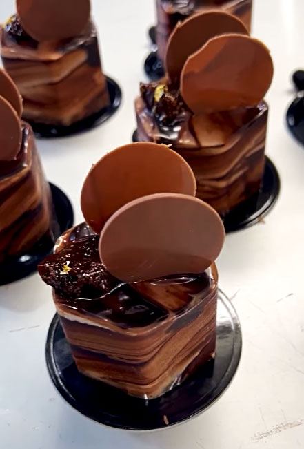 アールグレイ香るミルクチョコムースに、キャラメルフランボワーズとココナッツをアクセントに添えた、華やかで奥行きのあるショコラケーキ。